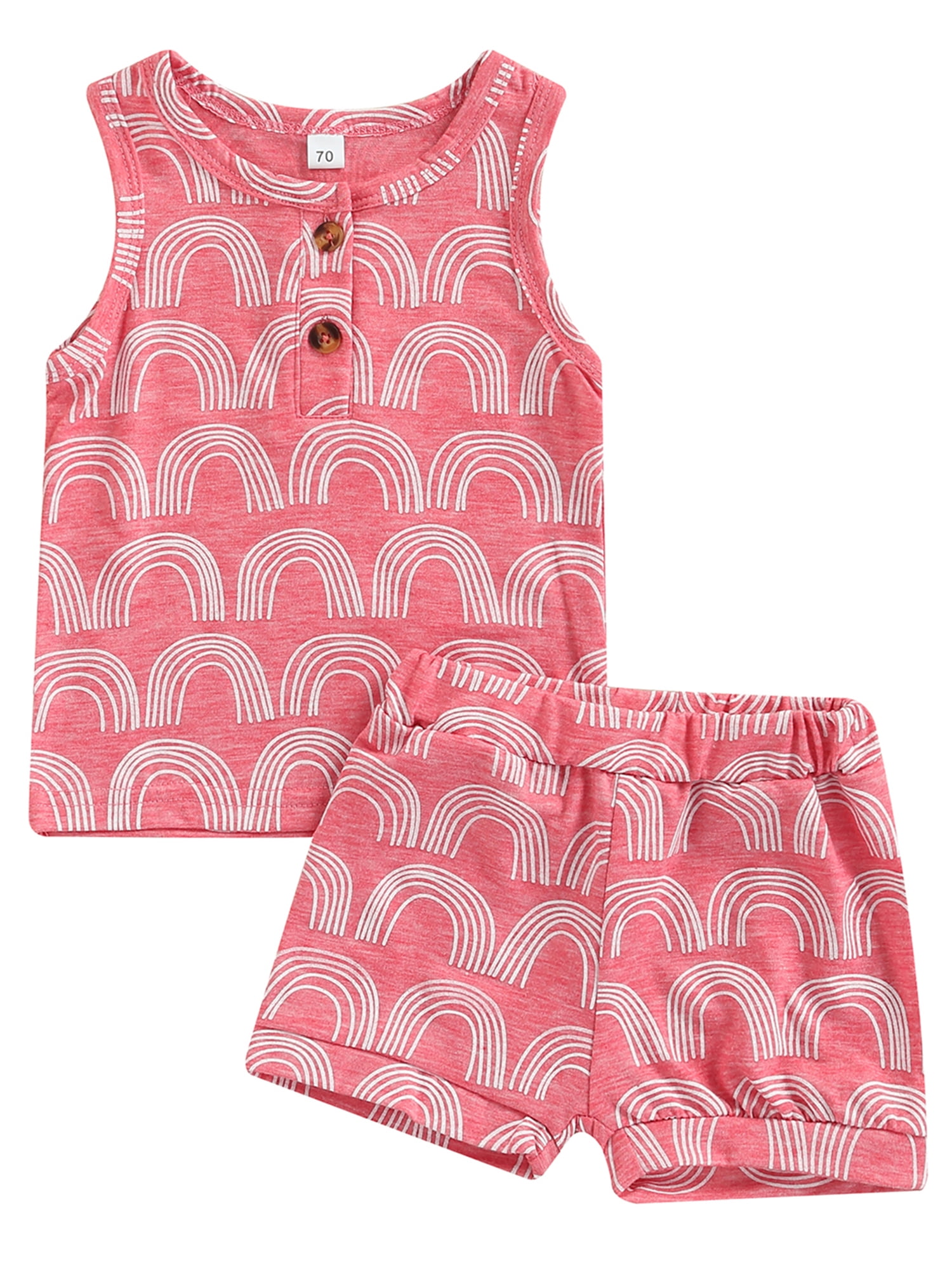 Centuryx Newborn Baby Toddler Boys Girls Clothes Set Stripes Rainbow Sleeveless Tank Tops Shorts Outfits Brown 9 12 Months Walmart Com